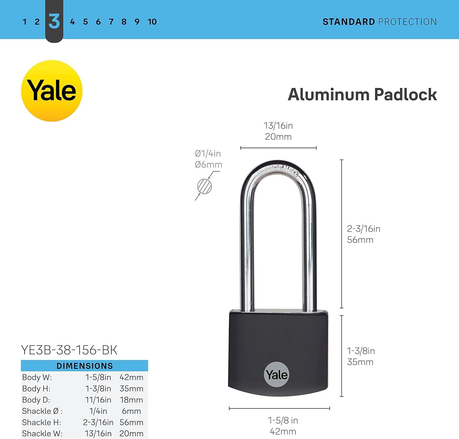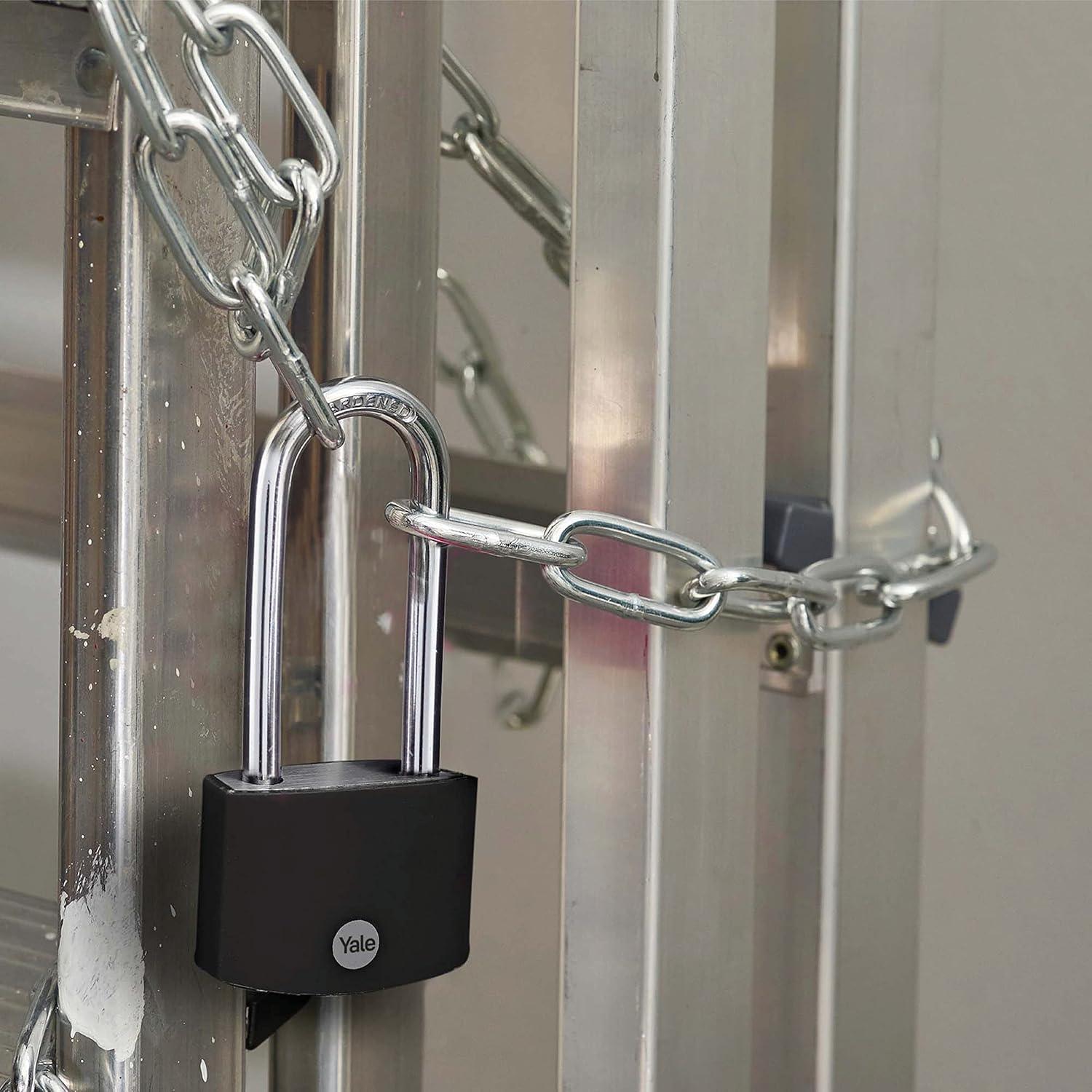 Designed for indoor and outdoor; Yale's Covered Padlock with long hardened steel shackle is suitable used for lockers, toolboxes, and other items you need to keep safe.