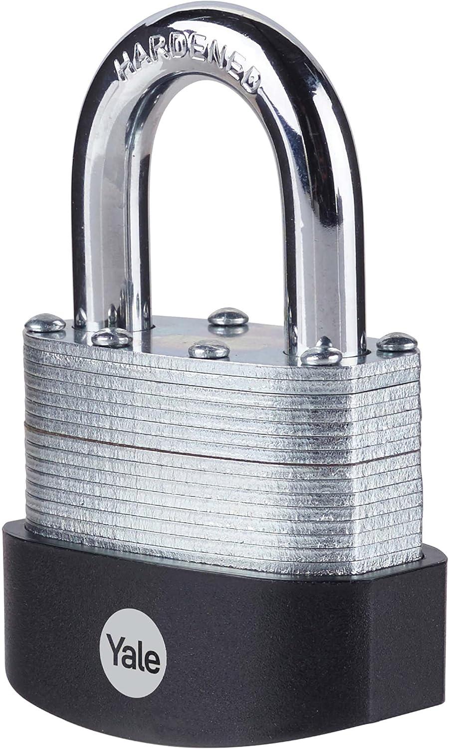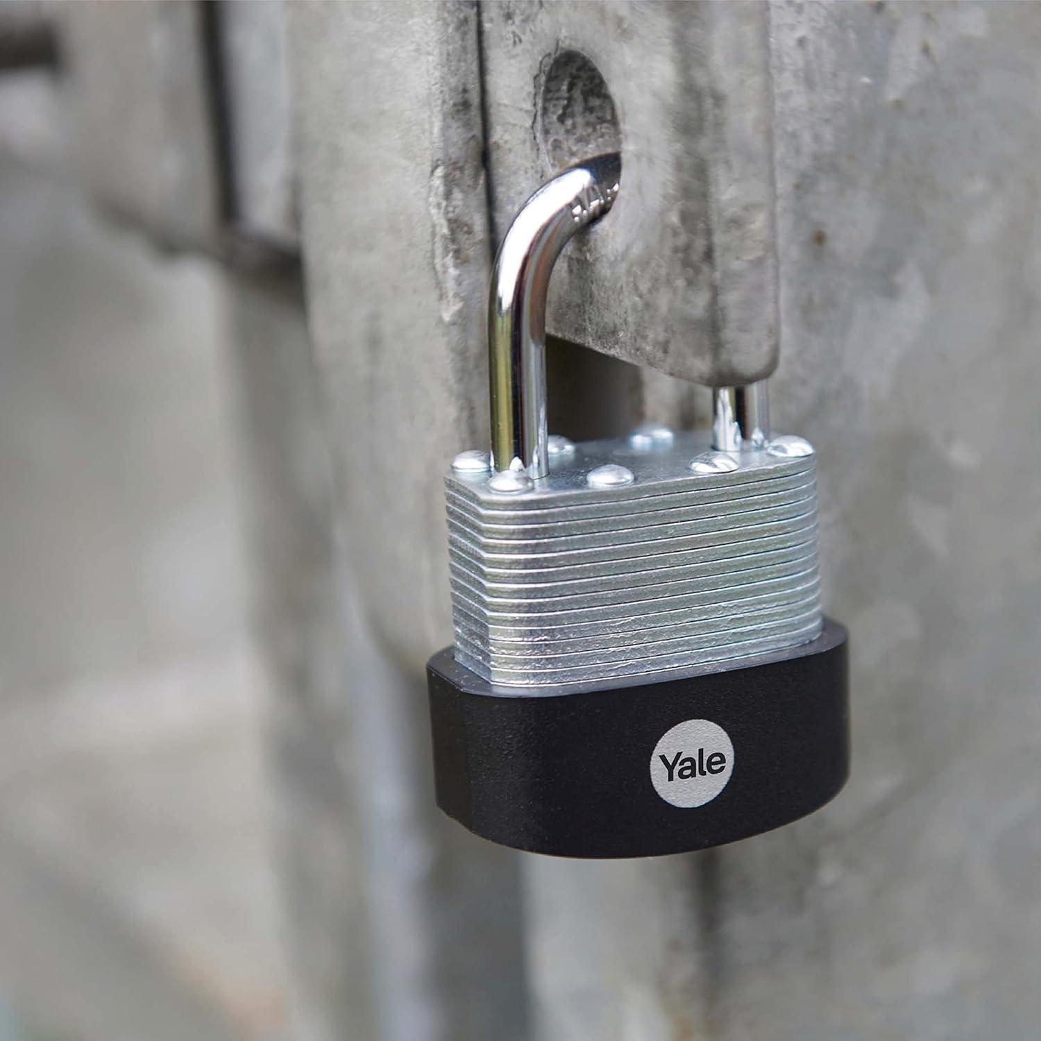 Designed for indoor and outdoor usage; Yale's laminated padlock with key is suitable for residential gates & fences, sheds, workshops & garages, toolboxes, and other items you need to keep safe.