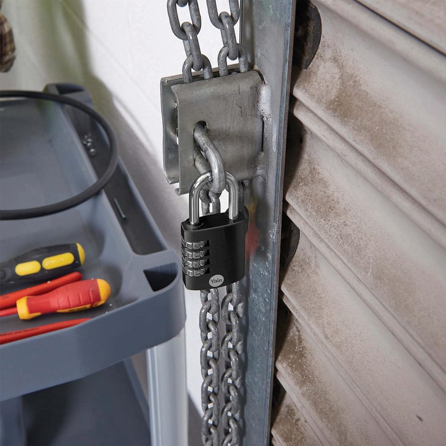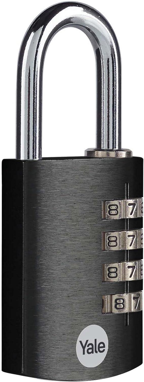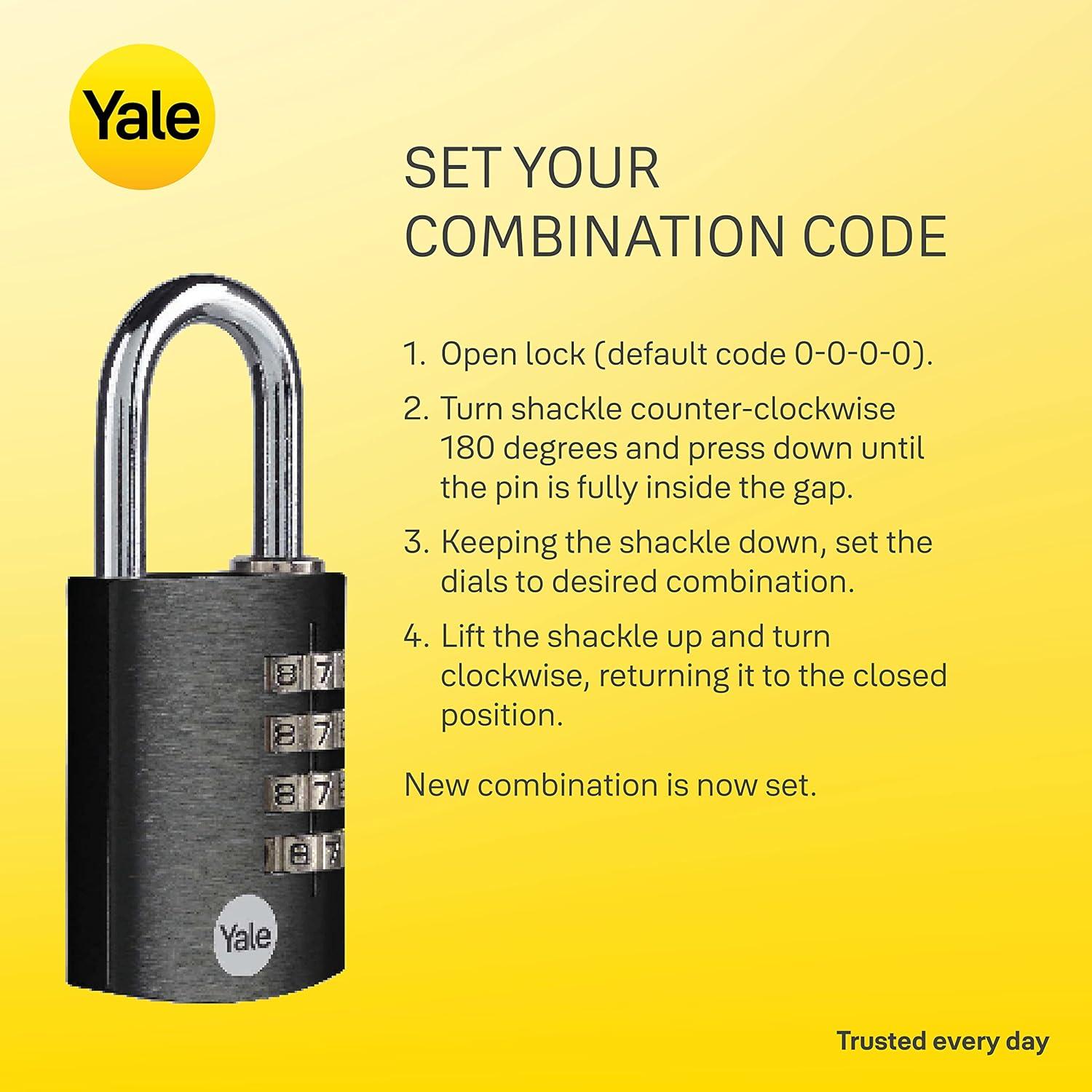 EXCLUSIVE YALE DESIGN: Set your four-digit combination lock for easy combination recall; No tool required The padlock is pre-set to open on 0-0-0-0; See user manual for combination reset instructions.