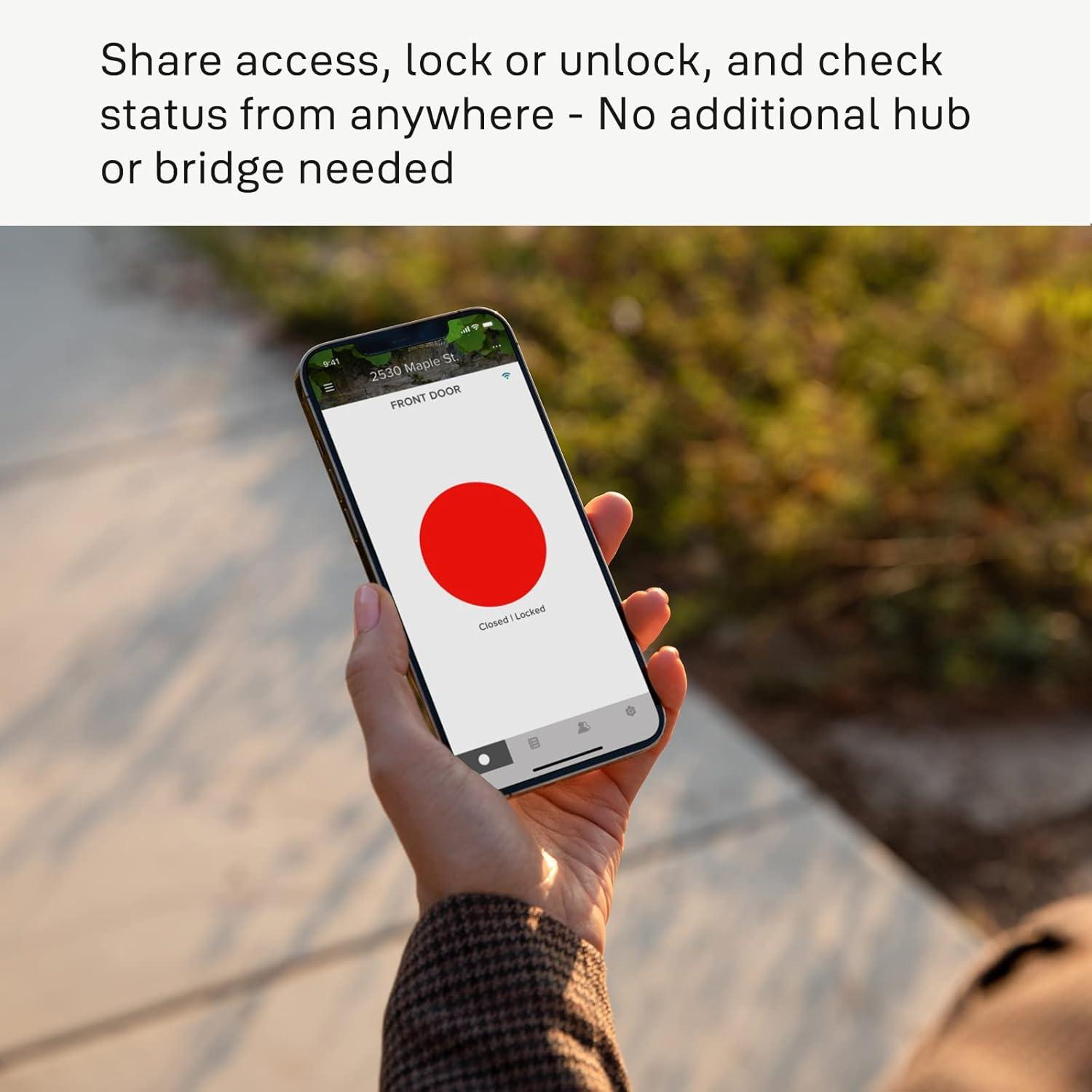 Lock, unlock, share access and see who comes and goes from anywhere using the Yale Access App – no additional hub needed.