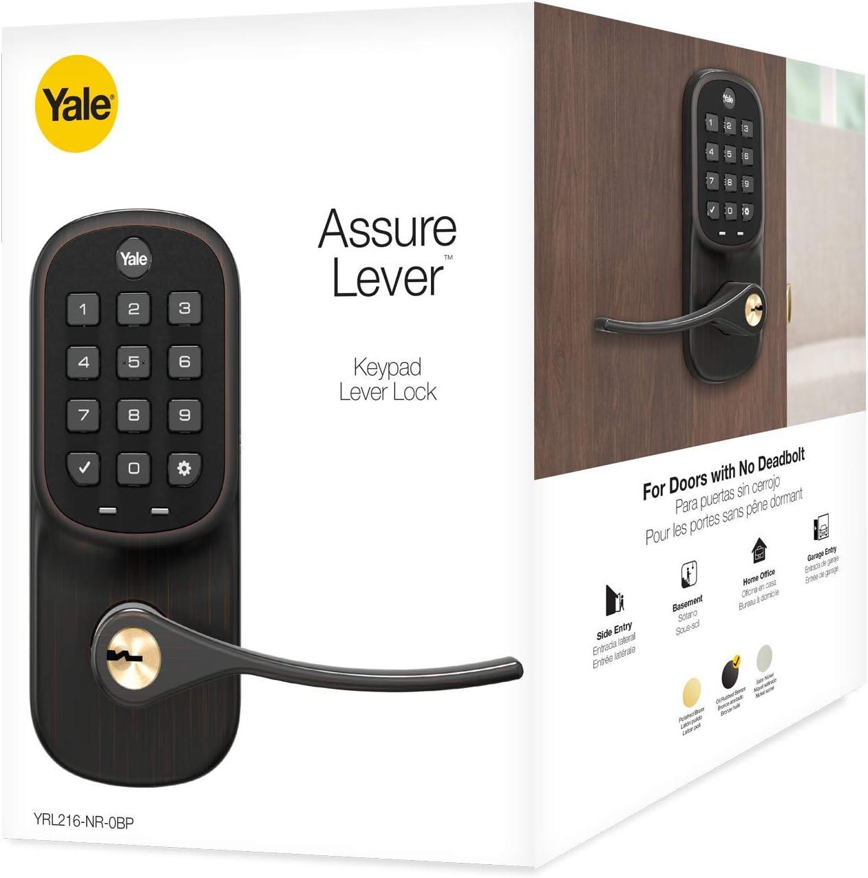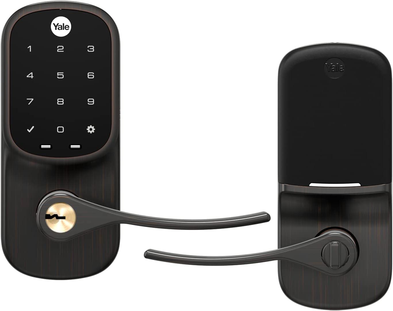 Yale Assure Lever Entry Door Lock with Wi-Fi Connected Touchscreen, Satin Nickel Smart Keypad Door Lock with Handle and Back-Up Key, YRL226-WF1-619(Bronze)