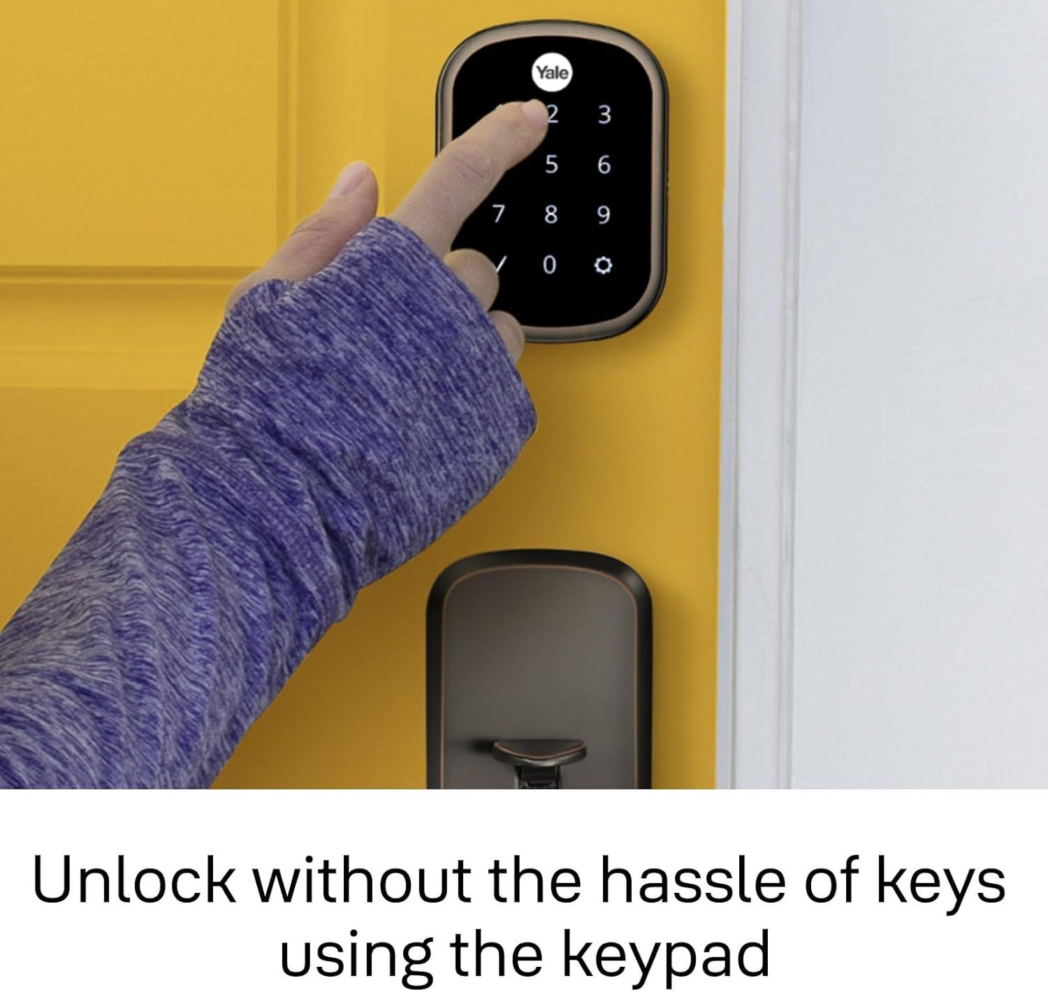 Lock and unlock your door from anywhere by adding the lock to a compatible Z-Wave smart home or alarm system and app (i.e. Samsung SmartThings, Ring Alarm, Wink, etc.). Requires compatible hub sold separately and app – no Yale app is used for this lock