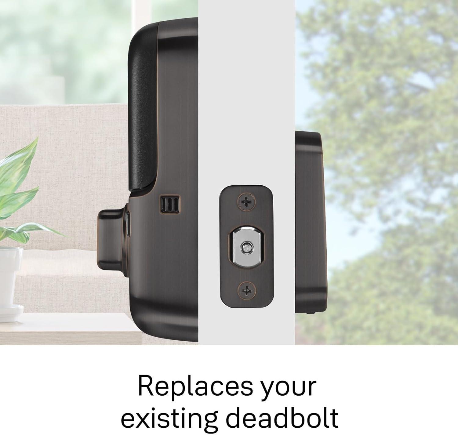 Replaces your existing deadbolt in minutes on standard doors, 1-3/8″ to 2-1/4″ thick with just a screwdriver. No additional holes needed. Mounting hardware and batteries included