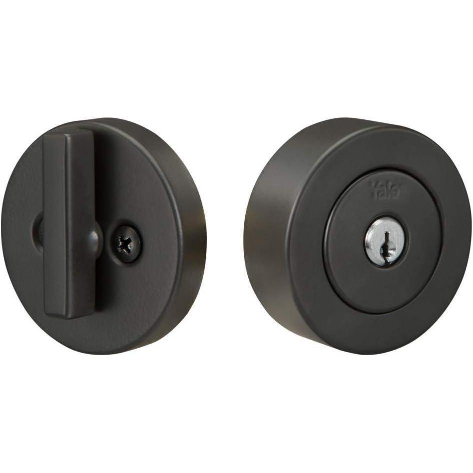 Yale Home Flat Round Single Cylinder, Black Suede Deadbolt