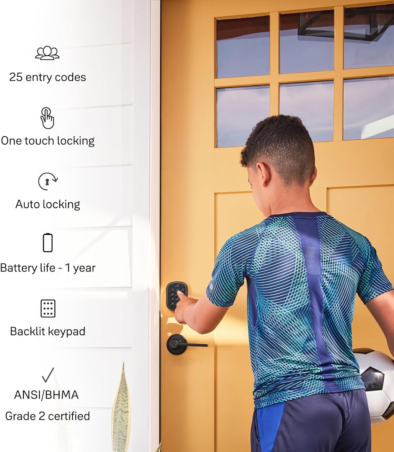 Access your home without the hassle of keys. This Yale Keyless Entry Deadbolt has a simple DIY installation process that doesn’t require any professional help, and there’s no in-app set-up needed. Create and store up key-free entry codes directly in the lock itself, and share secure and convenient access with friends, family, housemates, caretakers, and more. The backlit keypad ensures that you can easily read its numbers for entry at any time of day. With its sleek design and low profile it looks great on any door while bringing trusted security to your home.