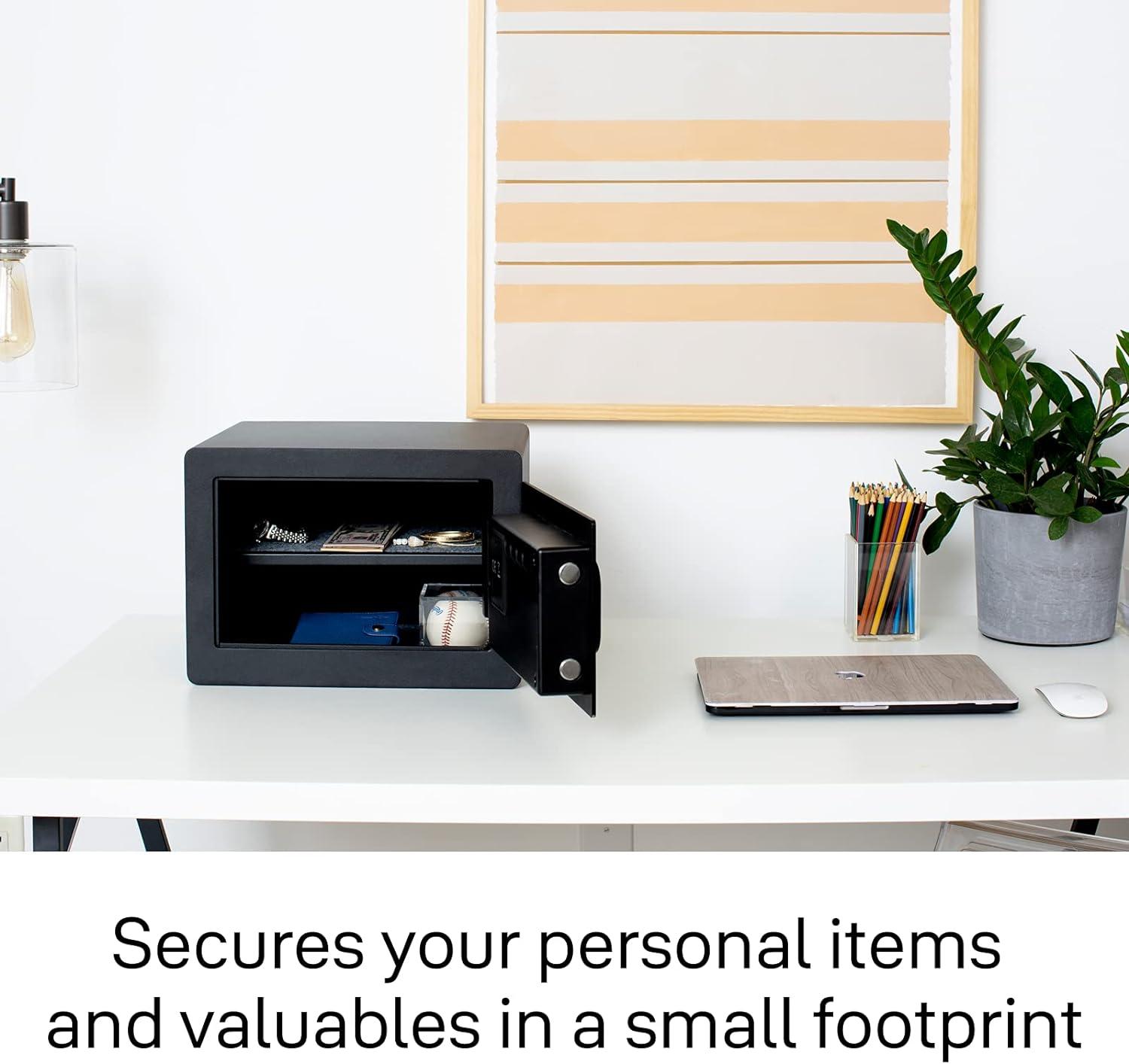 Protect your valuable belongings, like your important documents or jewelry with the Yale Smart Safe. Unlock using the built in keypad or key and never get locked out of your safe with battery back-up. With the door activated light and included shelf and hooks, users are easily able to see and organize valuables. This safe can be trusted to secure your most valued possessions with its laser cut door and two anti-saw bolts for extra security. Unlock and check status with voice assistants including Alexa, Google Assistant and Siri. You can even unlock the safe, share access with people you trust and receive access alerts, from anywhere, through your Yale Access App*. *Remote access requires a Yale Connect Wi-Fi Bridge.
