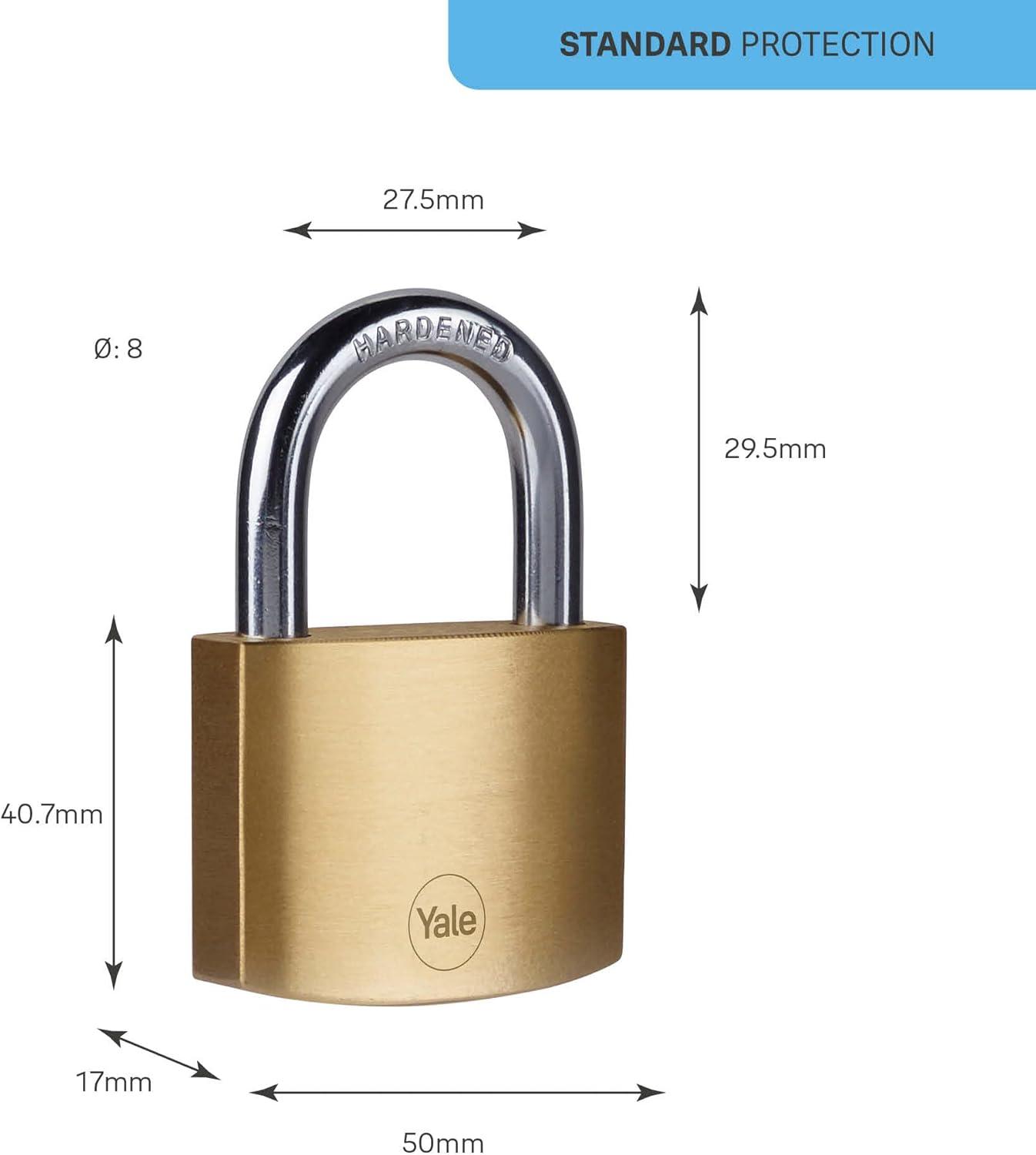 Yale Y110B/50/126/1 – Brass Padlock (50 mm) – Indoor Locks for Ladders, Shutter Doors, Tools – 3 Keys – Standard Security(50mm)