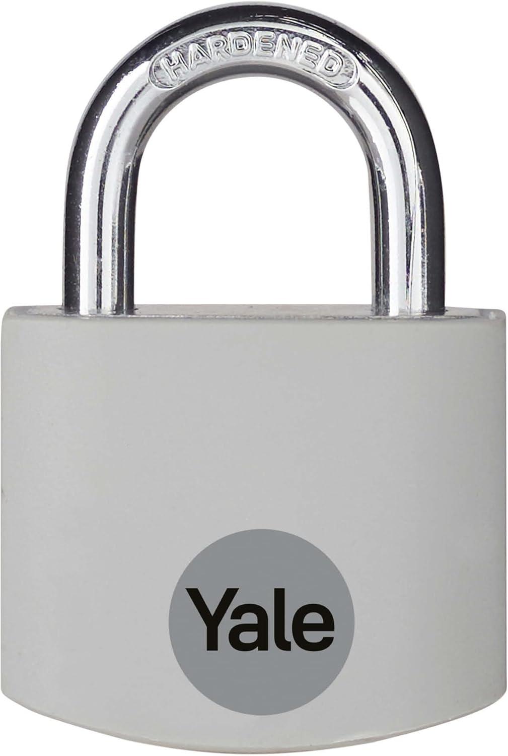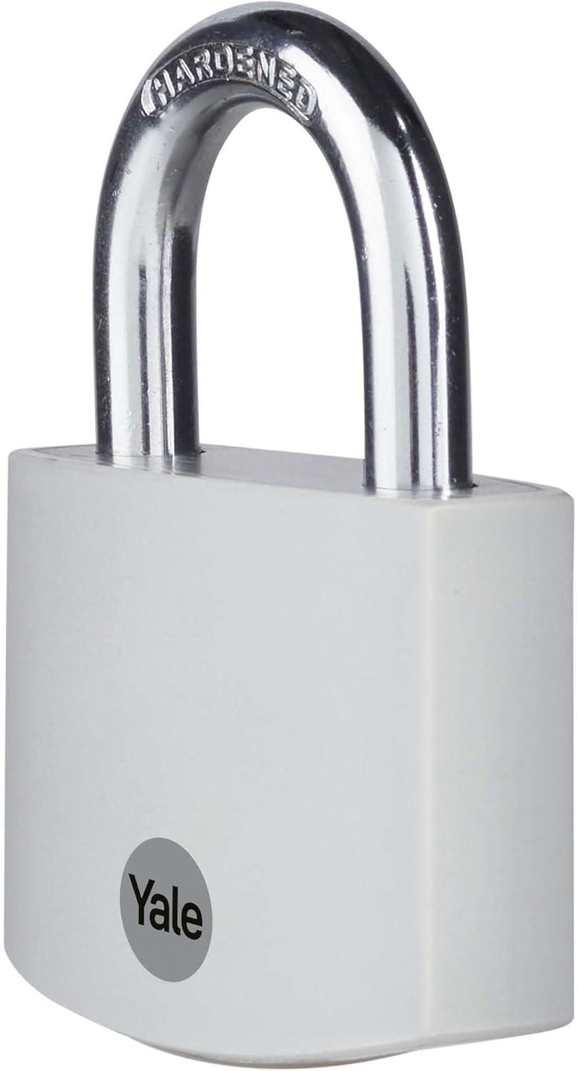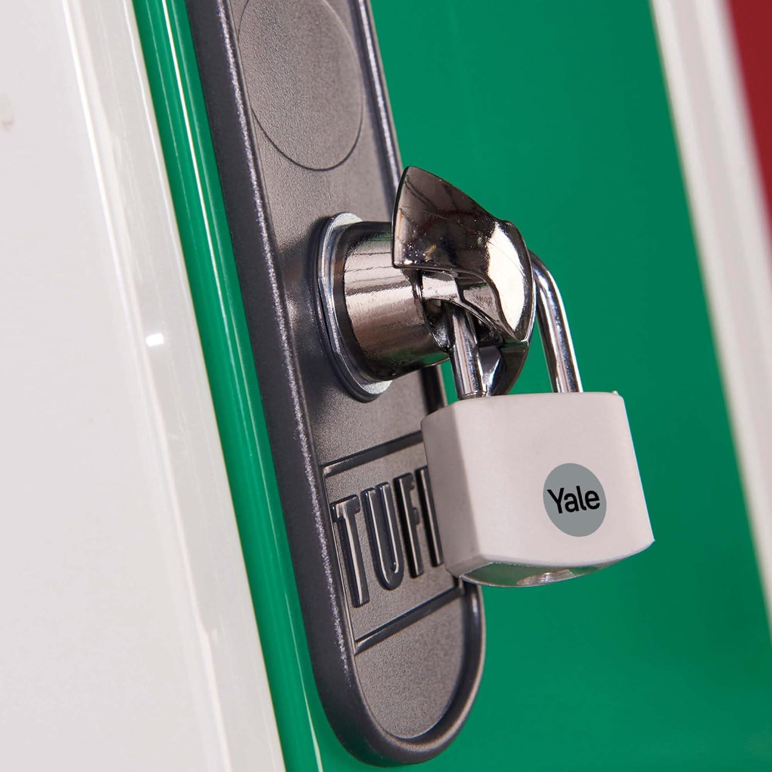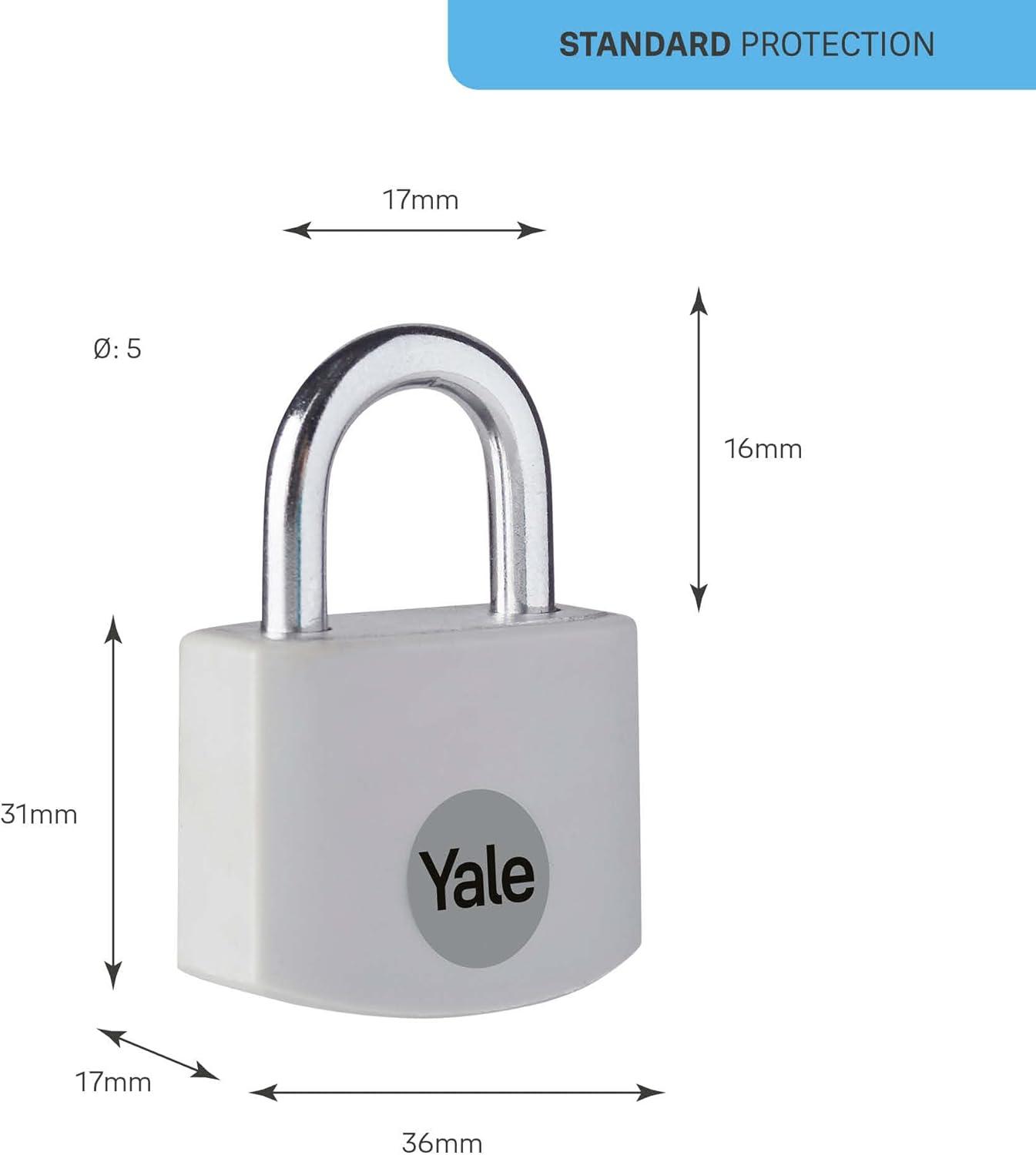 Trusted with your security for over 180 years, Yale continues to put your peace of mind first with a brand new range of aluminium padlocks. Constructed from hardwearing boron and rigorously tested against corrosion, these high quality Yale locks are designed to protect your work or gym locker, backpack, toolbox and any other indoor valuables you want to keep secure. With a 5 pin cylinder, double locking feature and a hardened steel shackle, the Yale YE3B padlock range is the ideal solution for your anti-theft needs. These lightweight aluminium padlocks are available in a variety of sizes, and in multipack versions, to suit your various security needs. Yale takes care of your possessions; you take care of the rest. PACKAGE CONTENTS: x1 Padlocks (38mm) x3 keys