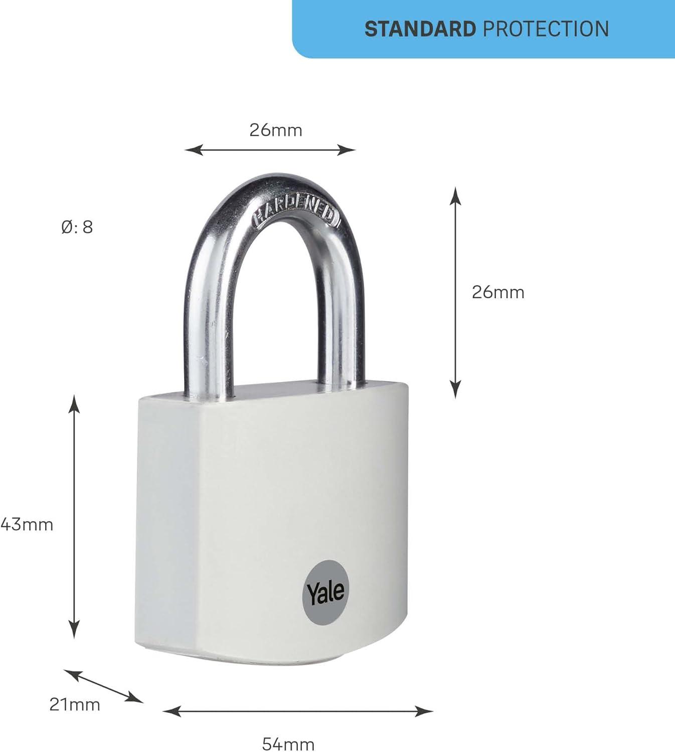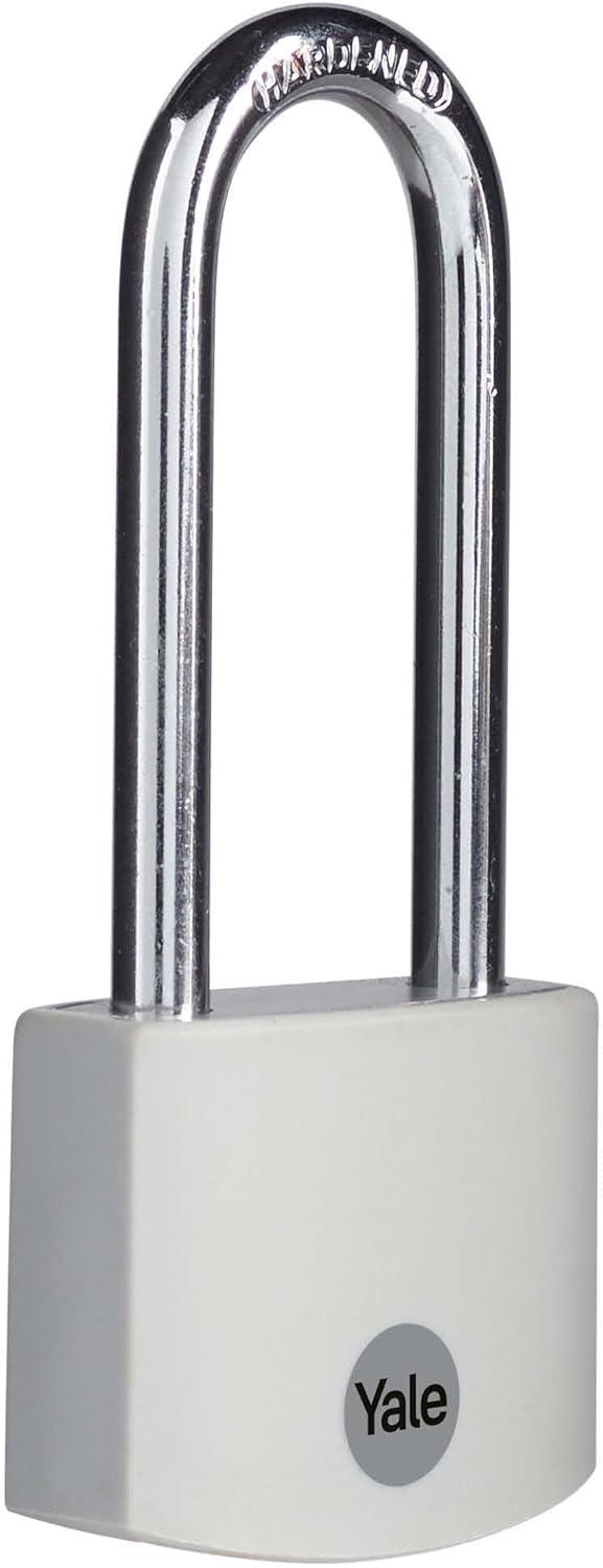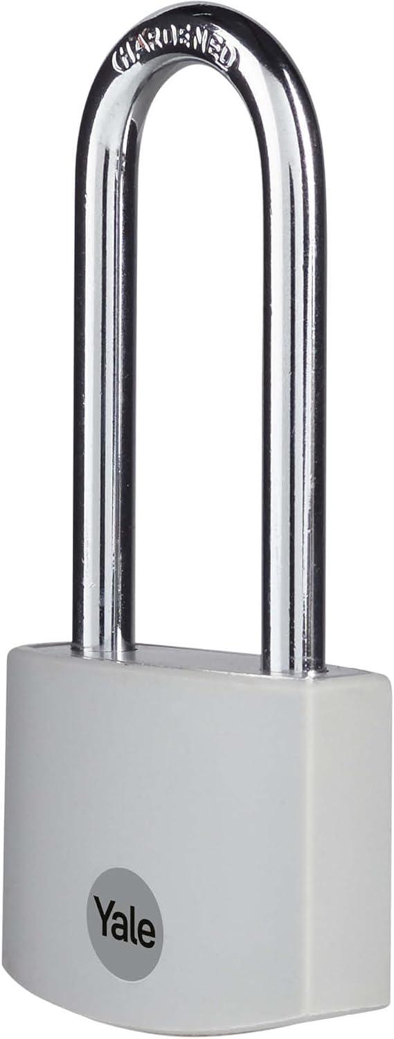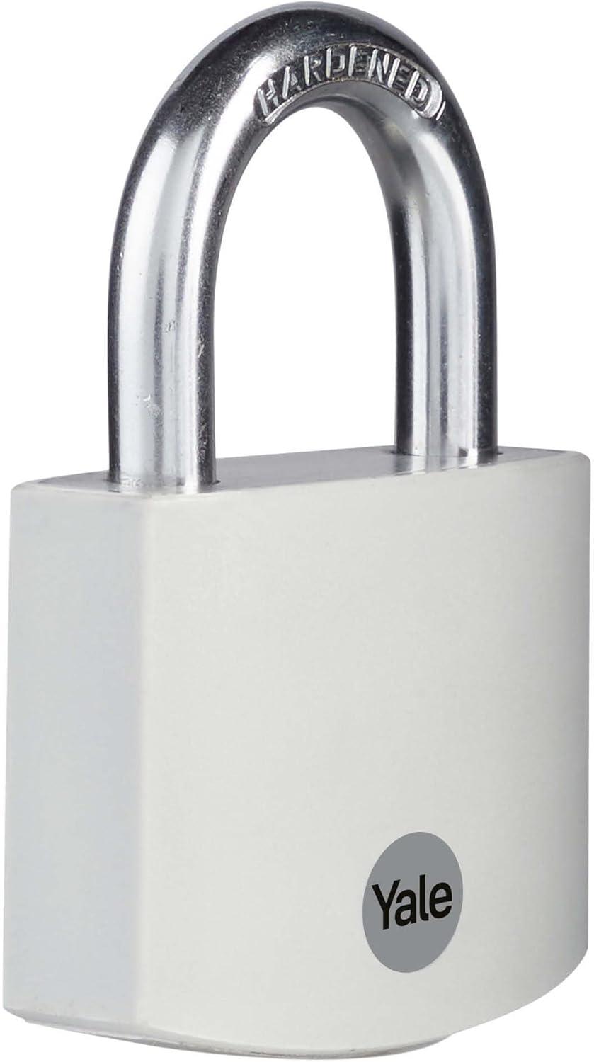 Trusted with your security for over 180 years, Yale continues to put your peace of mind first with a brand new range of aluminium padlocks. Constructed from hardwearing boron and rigorously tested against corrosion, these high quality Yale locks are designed to protect your work or gym locker, backpack, toolbox and any other indoor valuables you want to keep secure. With a 5 pin cylinder, double locking feature and a hardened steel shackle, the Yale YE3B padlock range is the ideal solution for your anti-theft needs. These lightweight aluminium padlocks are available in a variety of sizes, and in multipack versions, to suit your various security needs. Yale takes care of your possessions; you take care of the rest. PACKAGE CONTENTS: x1 Padlocks (38mm) x3 keys