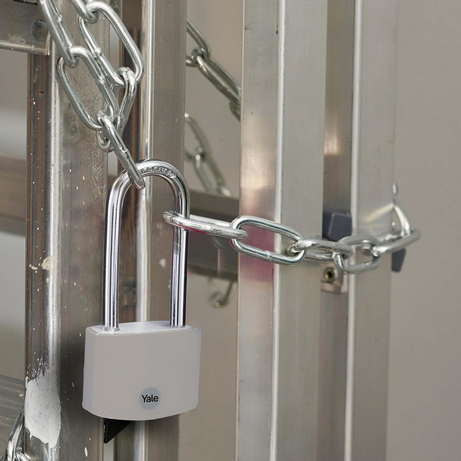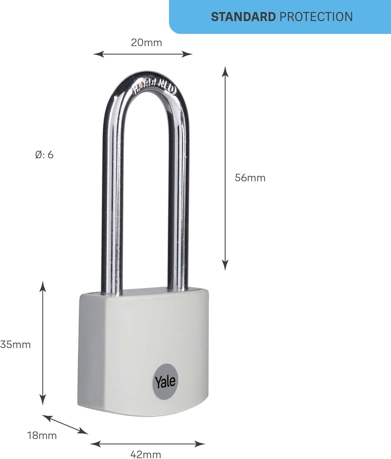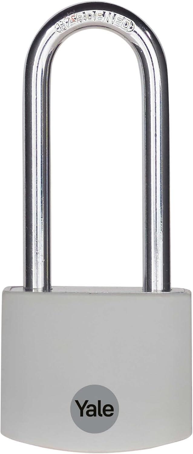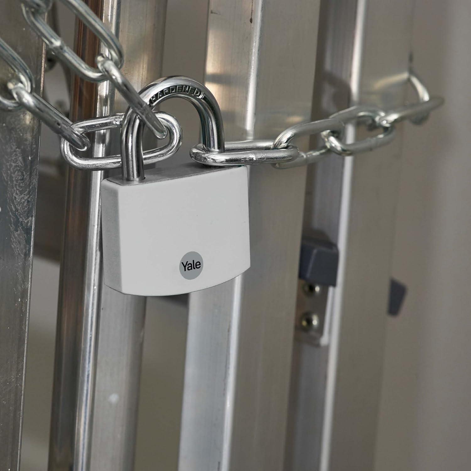 Trusted with your security for over 180 years, Yale continues to put your peace of mind first with a brand new range of aluminium padlocks. Constructed from hardwearing boron and rigorously tested against corrosion, these high quality Yale locks are designed to protect your work or gym locker, backpack, toolbox and any other indoor valuables you want to keep secure. With a 5 pin cylinder, double locking feature and a hardened steel shackle, the Yale YE3B padlock range is the ideal solution for your anti-theft needs. These lightweight aluminium padlocks are available in a variety of sizes, and in multipack versions, to suit your various security needs. Yale takes care of your possessions; you take care of the rest. PACKAGE CONTENTS: x1 Padlocks (38mm) x3 keys